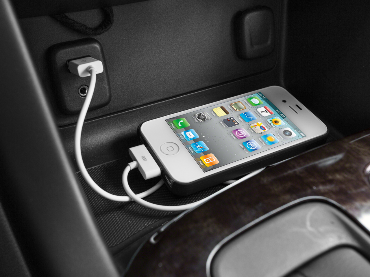 - with USB ports and auxiliary jack